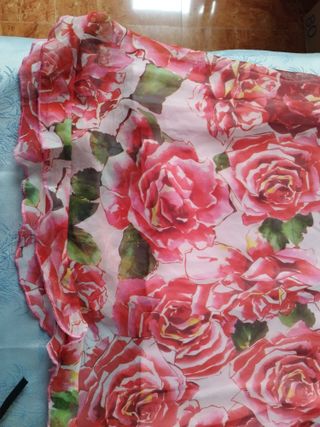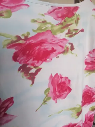 Camiseta con un bonito estampado de flores en tonos rosas y blancos. Talla G, es elástica y se adapta - Diseño floral. - Cuello redondo.