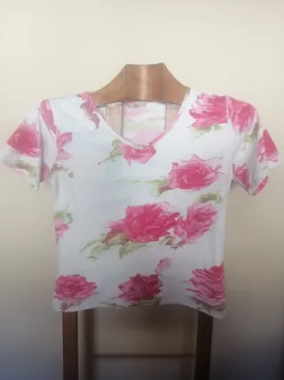 Camiseta floral rosa y blanca