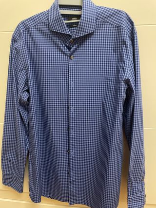 Camisa Hugo Boss Slim Fit Cuadros Azul Talla 42