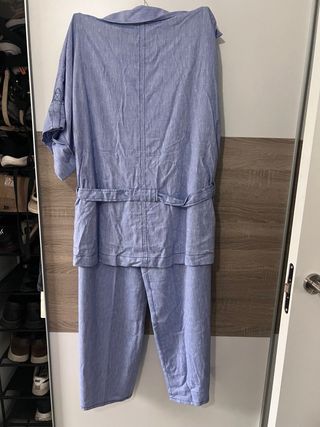 Conjunto Zara Camisa y Pantalón Lino Azul