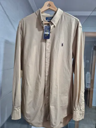 Camisa de manga larga de la marca Polo Ralph Lauren. - Color beige. - Logo del caballo bordado en el pecho.