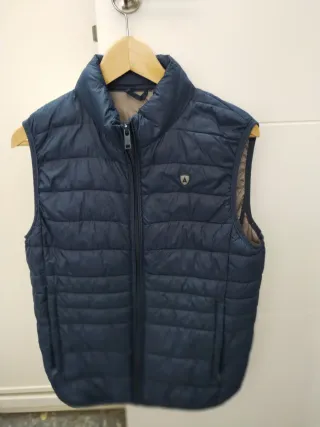 Chaleco acolchado de color azul, perfecto para añadir una capa extra de abrigo. - Cierre de cremallera frontal. - Cuello alto. - Bolsillos laterales.