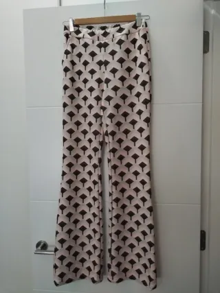 Pantalones de corte acampanado con un llamativo estampado geométrico. - Diseño de cintura alta. - Piernas anchas. - Tejido ligero y fluido.
