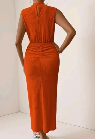 Vestido naranja con fruncido y abertura