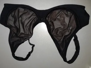 Sujetador de la marca Dim, talla 95D, en color negro y con un diseño de malla. - Copas de malla semitransparente. - Tirantes ajustables.