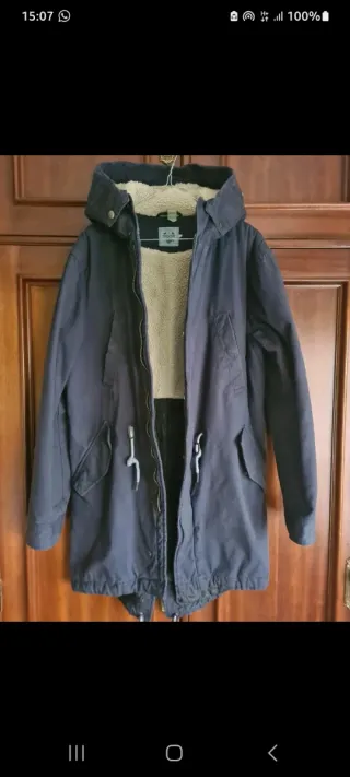 Parka de la marca Pier One en color azul marino. Cuenta con un forro interior de borreguito para mayor calidez. - Capucha. - Cierre de cremallera. - Cordones ajustables en la cintura. - Bolsillos frontales.