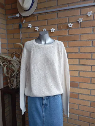 Jersey de lana de Zara en color marrón. Tejido con textura acanalada. - Manga ancha tipo murciélago. - Cuello redondo. Es una talla S/M