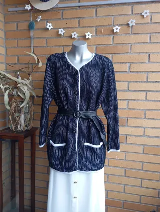 Cardigan Vintage Blanco y Negro