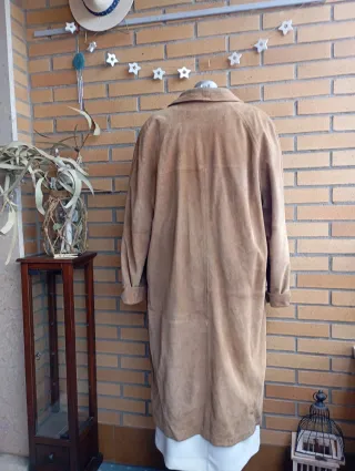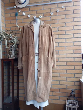 Abrigo largo de ante, un clásico atemporal.Tiene desperfectos ,se indica en las últimas fotos - Diseño vintage. - Cierre de botones. - Bolsillos frontales.