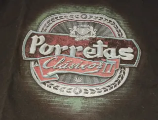 - Camiseta de la banda Los Porretas, con el diseño Clásicos II. - Diseño frontal con el logo de la banda. - Estampado multicolor sobre fondo negro. - 100% algodón. - En óptimo estado.