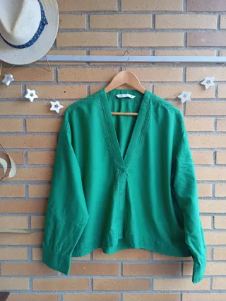 Blusa verde bordada Zara