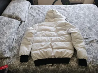 Abrigo acolchado blanco y negro hombre.