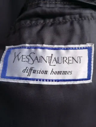 Elegante traje de lana de Yves Saint Laurent. - Chaqueta con cierre de un botón. - Pantalón de vestir con pinzas.
