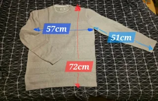 Sudadera de manga larga con un diseño llamativo. - Cuello alto con rayas azules y grises. - Puños de las mangas con el mismo detalle de rayas. - Corte holgado y cómodo.