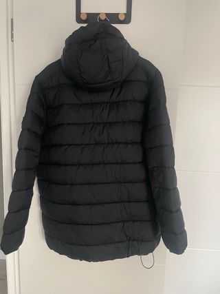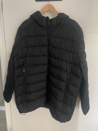 Cazadora de hombre con capucha y cierre de cremallera. - Diseño acolchado. - Bolsillos frontales con cremallera. - Cordón ajustable en el bajo. - Esta nueva. Muy ligera y muy caliente.