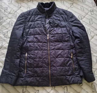 Chaqueta acolchada con un diseño moderno y elegante. Perfecta para añadir una capa extra de abrigo. Cierre de cremallera frontal. Bolsillos laterales con cremallera. Uno de ellos está mal. La talla indica una 50 pero equivale a una L. Es muy ligera y ponible. Ancho de axila a axila 54 cm.
