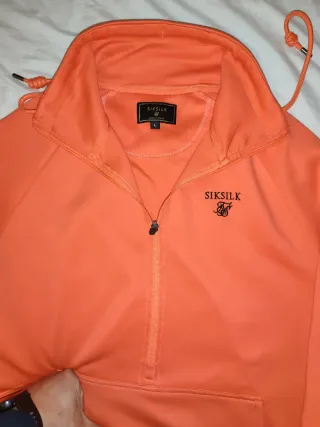 Sudadera con un llamativo color naranja y un diseño moderno. - Media cremallera frontal. - Bolsillo tipo canguro. - Capucha con cordones ajustables.