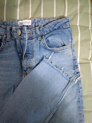 Vaqueros de la marca Zara con un estilo moderno y actual. - Corte recto. - Efecto desgastado en los bajos. - Cierre de cremallera y botón. Talla pequeño