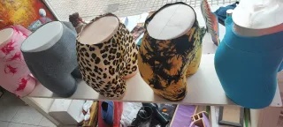 Conjunto de ropa deportiva para mujer. - Diseño con estampado de leopardo. - Tejido elástico y cómodo. - Estampado abstracto en tonos amarillos y negros. - Color liso en azul vibrante. - Estampado tie-dye en rosa.