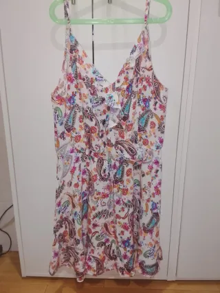 Vestido blanco de la marca Desigual con un bonito estampado floral. - Diseño sin mangas. - Estampado de flores en tonos rojos, rosas y morados. - Tejido con textura.