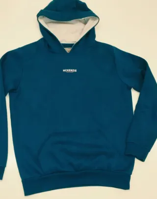 Sudadera para niño con capucha de la marca McKenzie. - Color azul verdoso (teal). - Diseño con logo pequeño en el pecho. - Interior de la capucha en color claro.