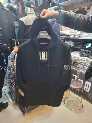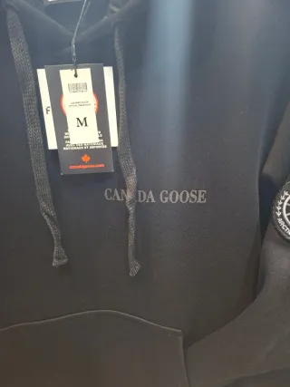 Sudadera con capucha de la marca Canada Goose. - Color negro. - Talla M (equivalente a 38-40 / 48-50). - Logo de la marca en la manga.