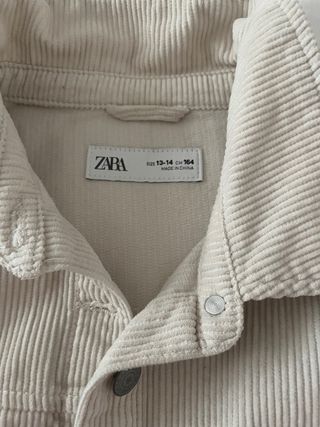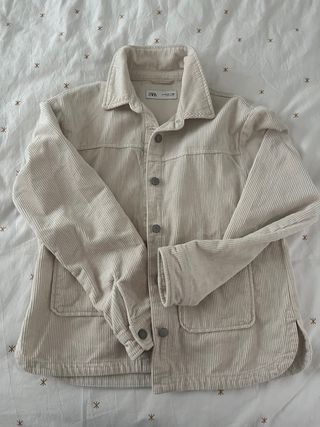 Camisa de pana de Zara en color beige. Un básico versátil para cualquier armario. - Cierre de botones. - Bolsillos en la parte delantera. - Cuello camisero.