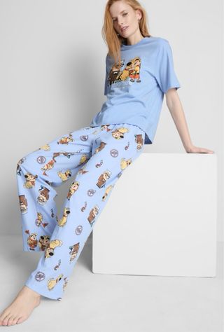 Conjunto de pijama para mujer con un divertido estampado de animales. - Camiseta de manga corta. - Pantalón largo. - Tejido suave y cómodo.
