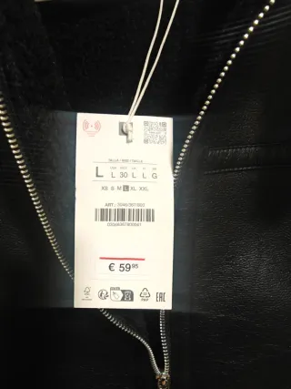 Chaqueta negra de ZARA, por dentro lleva borreguito y abriga bien. Es de cremallera y tiene bolsillos. Talla L, está nueva con etiqueta. La compré pero al final no la he usado. Si te interesa, escríbeme.