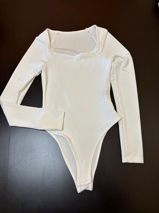 Body manga larga escote cuadrado blanco XS