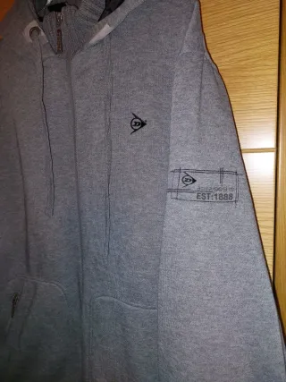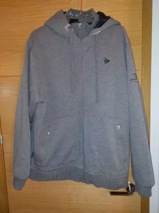 Chaqueta Dunlop de color gris, con capucha y cierre de cremallera. - Diseño con capucha. - Cierre frontal completo con cremallera. - Bolsillos laterales con cremallera. - Puños y bajo de canalé.
