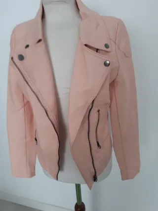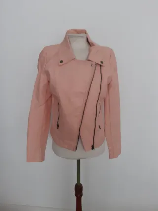 Chaqueta efecto piel sintética rosa