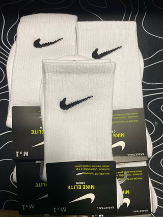 Pack de calcetines Nike Elite Crew en color blanco. Perfectos para el día a día o para la práctica deportiva. - Tecnología Dri-FIT. - Amortiguación máxima en zonas de alto impacto. - Diseño tipo crew.