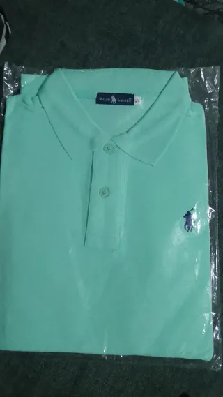 Polo de manga corta de la marca Ralph Lauren. - Color verde menta. - Logo del jinete bordado en el pecho. - Cuello clásico. - Cierre de dos botones.