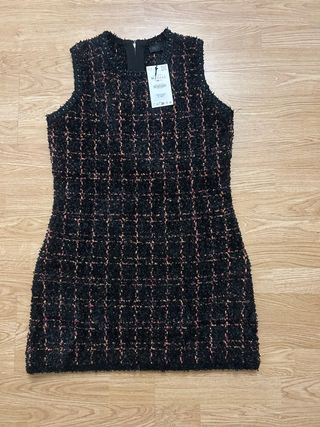 Vestido Zara Tweed Negro Rosa Talla M