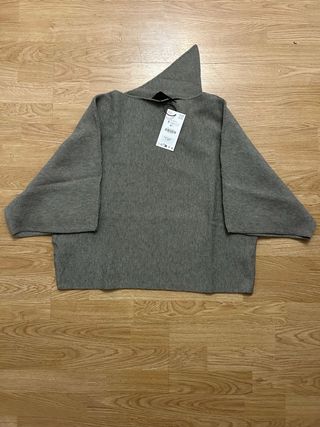 Jersey de punto Zara en color gris. Diseño moderno y versátil. - Tejido suave y confortable. - Corte amplio con mangas acampanadas. - Cuello con capucha puntiaguda.