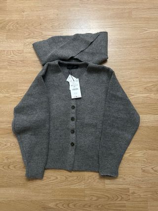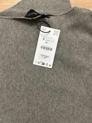 Rebeca de punto gris de Zara. - Diseño de cuello alto. - Mangas largas. - Corte entallado.