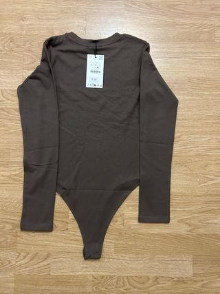 Body de manga larga de Zara en color marrón. - Diseño ajustado. - Cuello redondo. - Manga larga. - Cierre inferior.