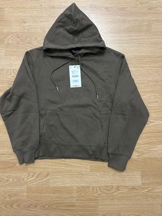 Sudadera con capucha de Zara en color marrón. - Capucha con cordones. - Bolsillo canguro delantero. - Puños y bajo elásticos.