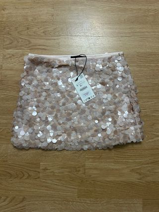 Falda Zara lentejuelas rosa/dorada Talla S