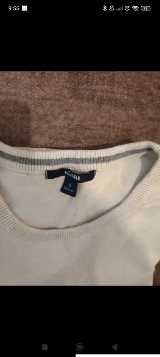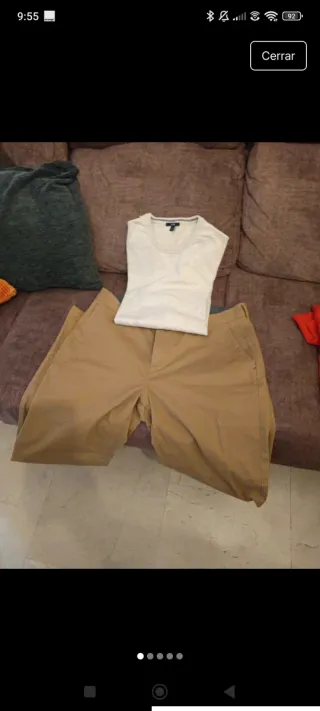 Conjunto de ropa para hombre. - suéter color crema Kiabi talla L - Pantalón tipo chino talla 44 Camel Kiabi - suéter color coral talla L Springfield