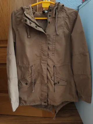 Parka de mujer con un diseño moderno y práctico. - Capucha integrada. - Cierre de cremallera y botones. - Bolsillos frontales con solapa. - Cintura ajustable con cordón. - Detalle de cremallera en el pecho. En la segunda foto se ve más el color ya que es más oscurita(más bonita)que en las fotos