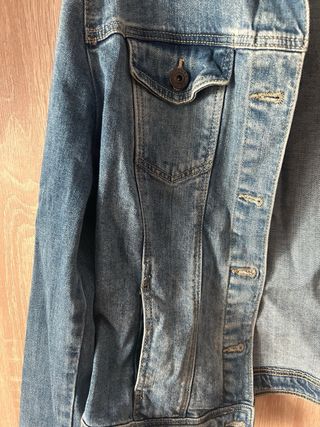 Chaqueta vaquera Bershka talla M en muy buen estado. - Diseño clásico. - Cierre de botones. - Dos bolsillos en el pecho, dos laterales y otros dos en los puños de las mangas.