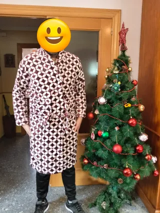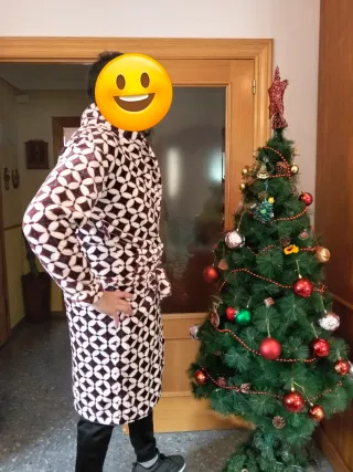 Batín de hombre con un diseño moderno y cómodo. Está sin estrenar, totalmente nuevo. Tiene un tacto especialmente suave y caliente. - Estampado de rombos en marrón y blanco. - Tejido suave y agradable al tacto.