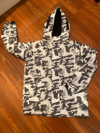 Cortavientos con un diseño de camuflaje moderno y un forro interior de felpa para mayor comodidad. - Diseño de camuflaje en tonos grises y blancos. - Interior forrado de felpa suave. - Capucha integrada.