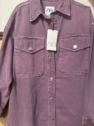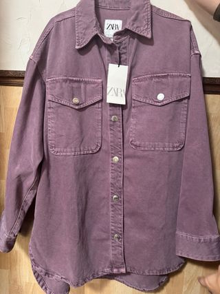 Chaqueta estilo camisero de Zara con un diseño moderno y cómodo. - Corte oversize. - Dos bolsillos en el pecho. - Cierre de botones. - Cuello camisero. talla bastante grande, hasta una XL