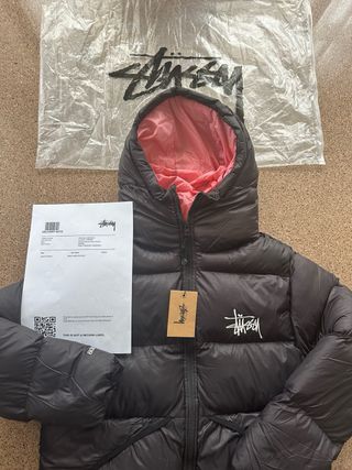 Chaqueta acolchada Stüssy con un diseño moderno y reversible. NO INCLUYE LA BOLSA Perfecta para invierno o regalo!! - Exterior negro. - Interior en color rosa vibrante. - Logo de Stüssy en el pecho.