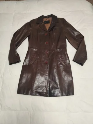Elegante chaquetón de piel tipo bison en tono marrón. Una prenda clásica y sofisticada. - Diseño tipo chaquetón. - Piel de bison.