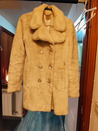 Abrigo de pelo sintético muy calentito, perfecto para los días fríos. - Diseño de doble botonadura con bonitos botones plateados (ver fotos) - Cuello amplio y suave de solapa - Largo 3/4. - Como nuevo, sin defectos ni taras y limpio de tintorería