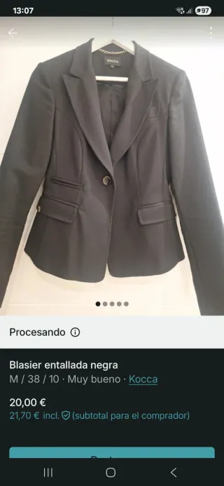 Blazer entallada negra Kocca Talla M Da poca talla